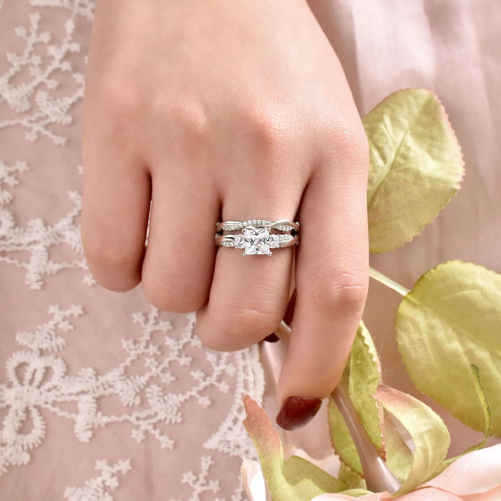 Anillo de Compromiso de Plata 925 | Diseño de Eternidad con Cruz Trenzada y Circonitas de Corte Princesa