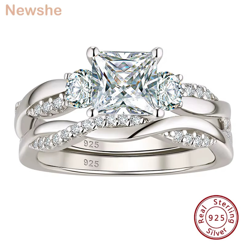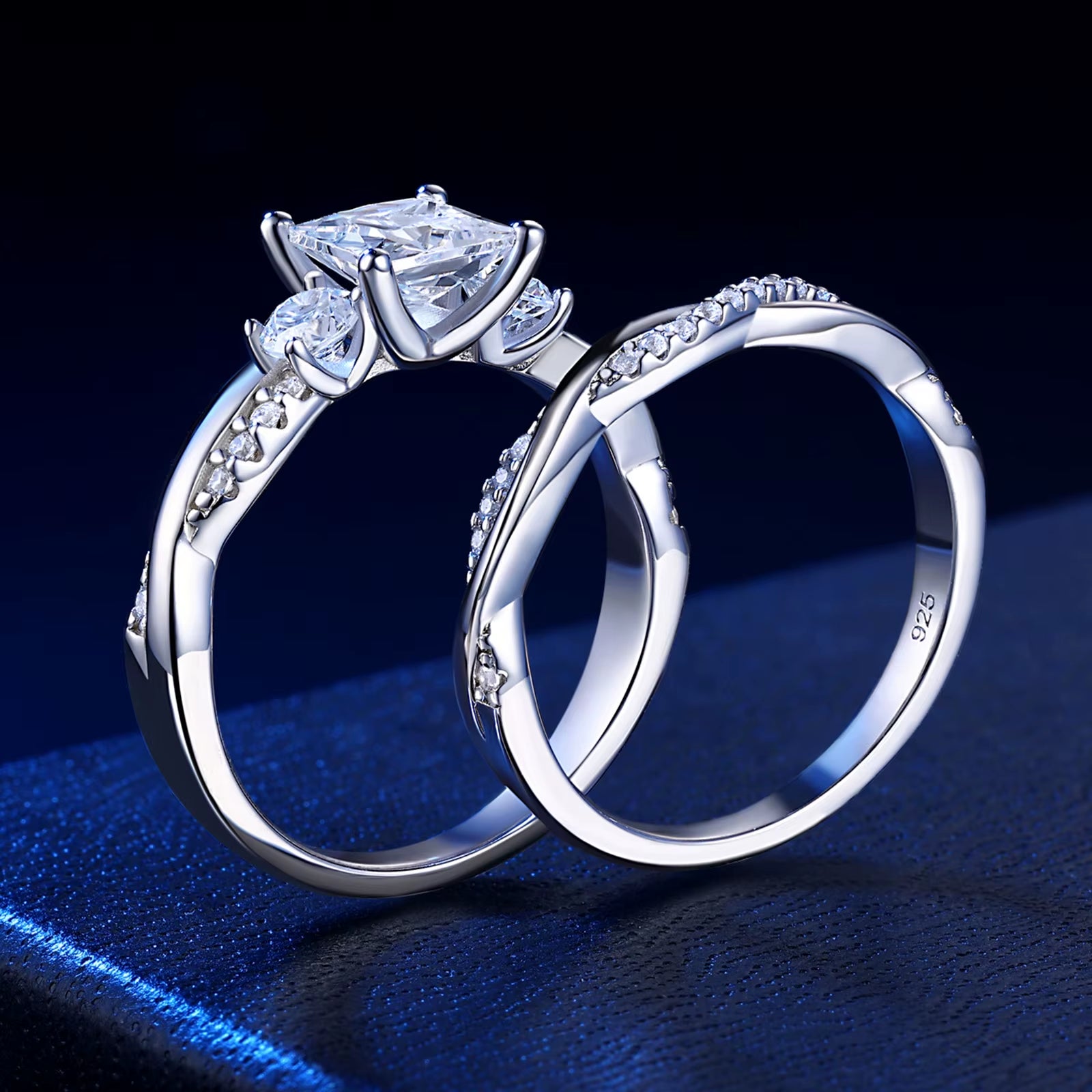 ¿Qué incluye la caja? Juego de anillos de compromiso y boda en plata 925 con circonitas AAAAA Caja de regalo de lujo.