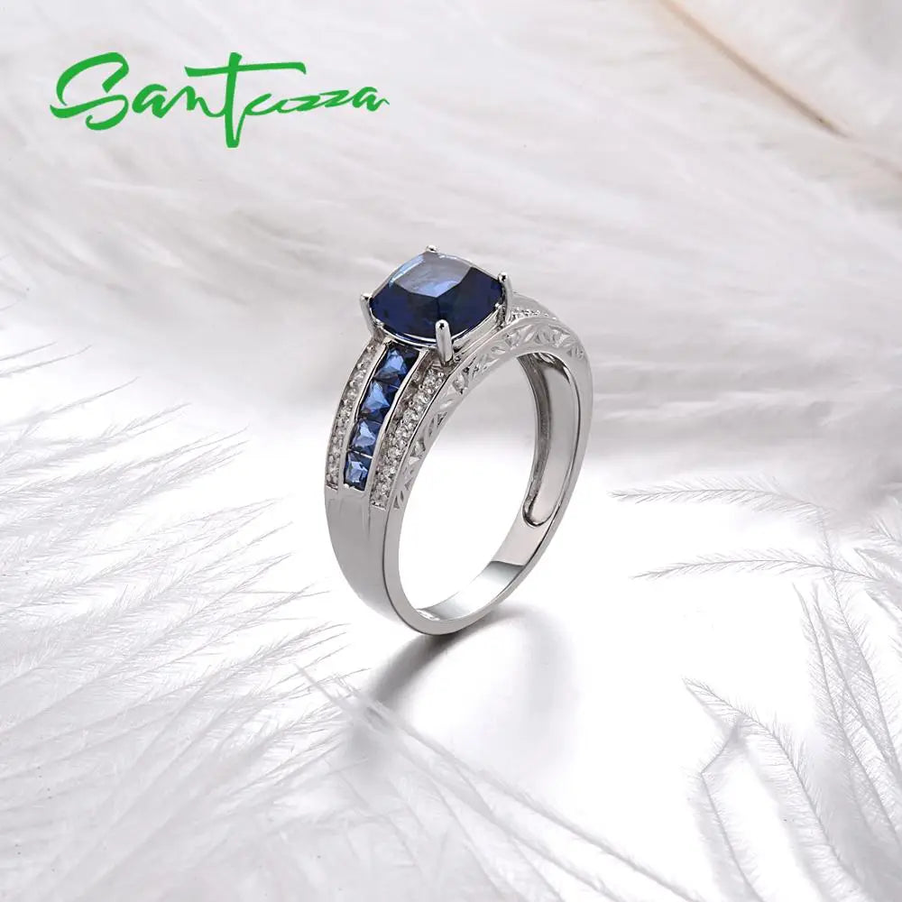 Anillo de Plata 925 para Mujer SANTUZZA | Piedra Azul Talla Cojín – Joyería Fina de Boda