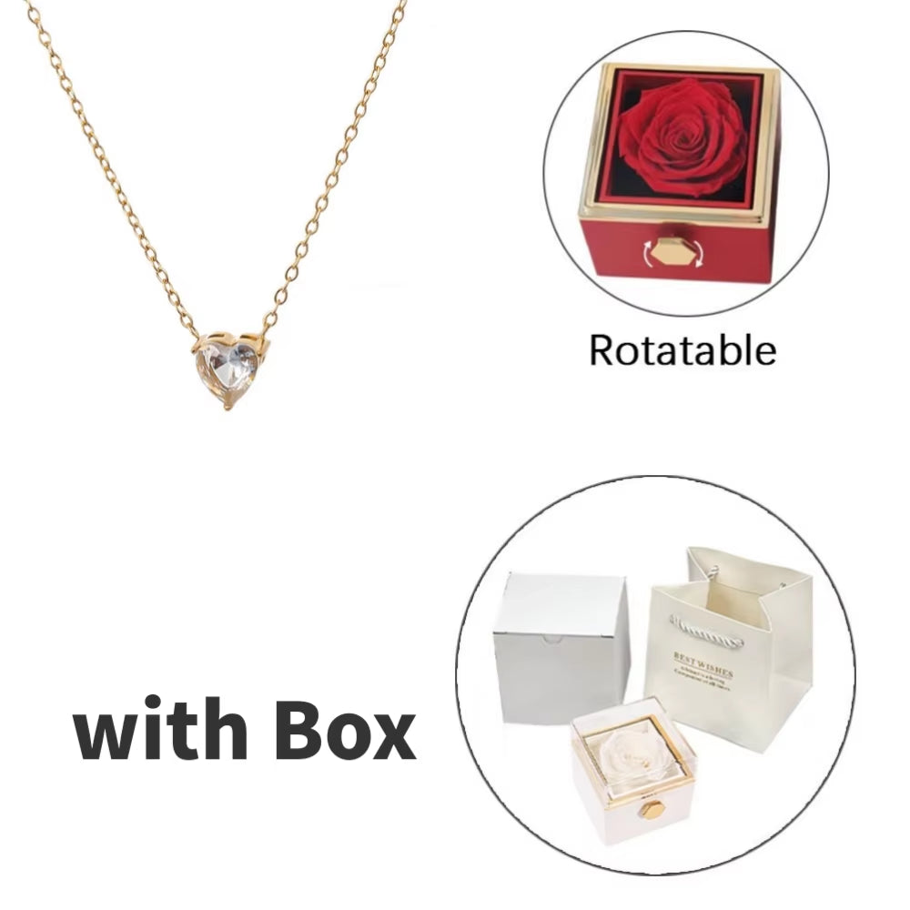 Caja de Rosa Eterna con Pulsera de Circonita en Forma de Corazón | Regalo de San Valentín para Ella, Pareja o Esposa