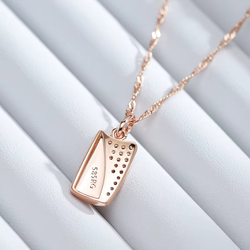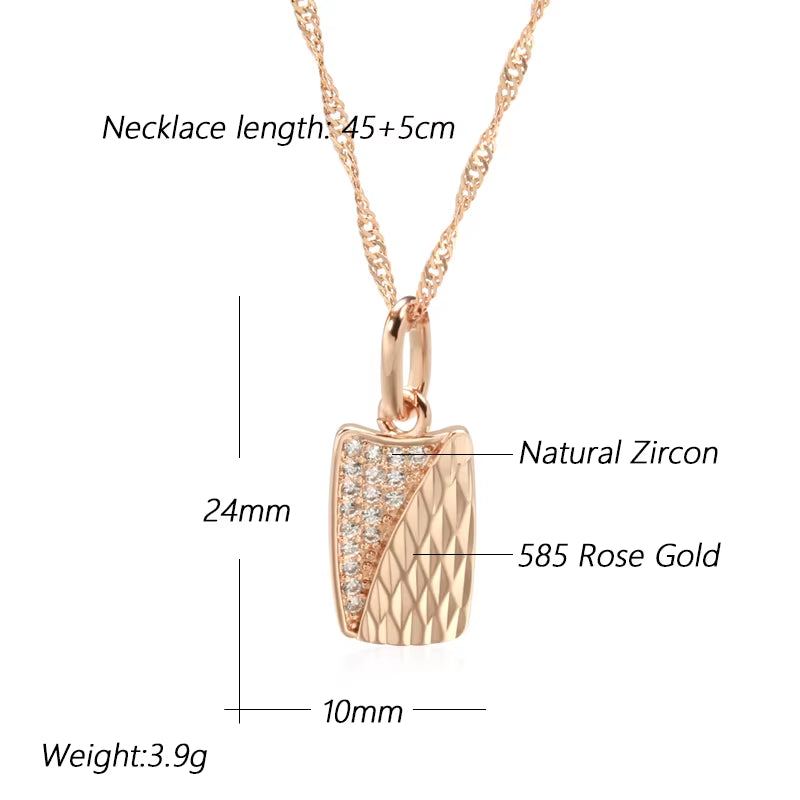 Este collar de moda en oro rosa 585 destaca por su colgante cuadrado adornado con circonitas naturales, creando un diseño de inspiración étnica que combina brillo, carácter y sofisticación. Su acabado fino y materiales de alta calidad lo convierten en una joya ideal para novias y bodas, aportando un toque distintivo y elegante a cualquier look especial. Versátil, duradero y lleno de estilo, este collar también puede acompañar atuendos diarios con un aire único y refinado.