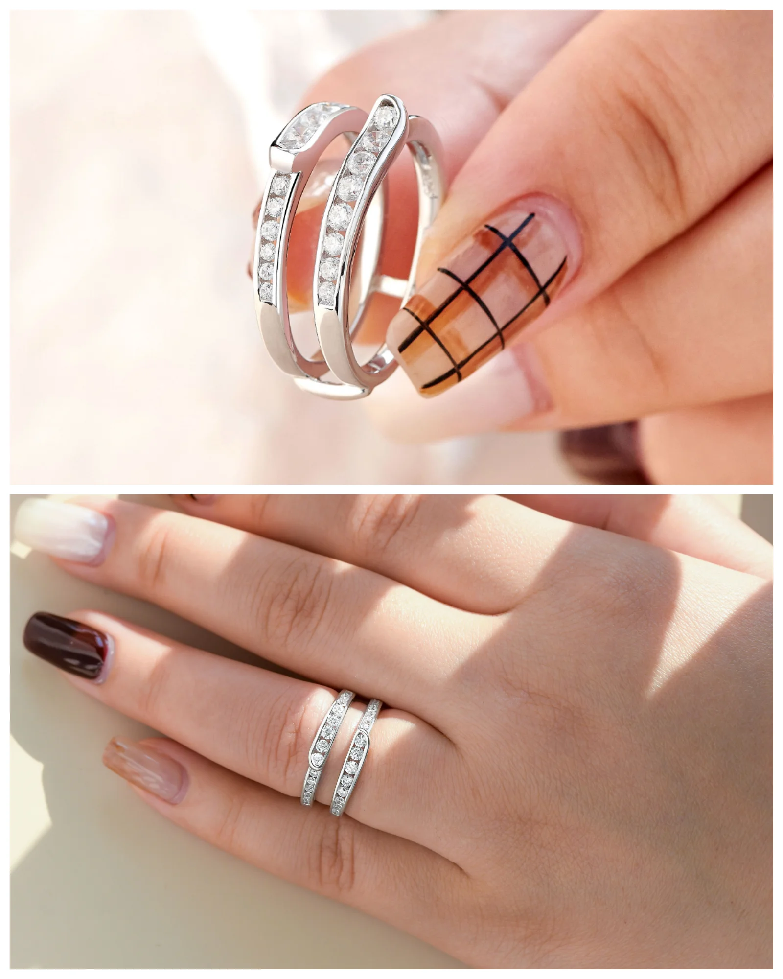 Contenido del paquete: 2 anillos, bolsa de polipropileno, estuche de joyería.
