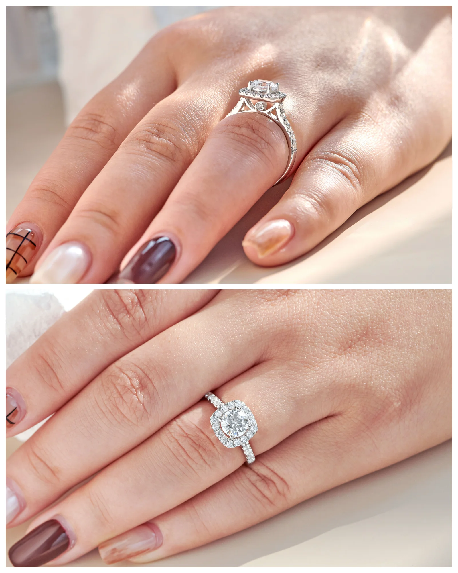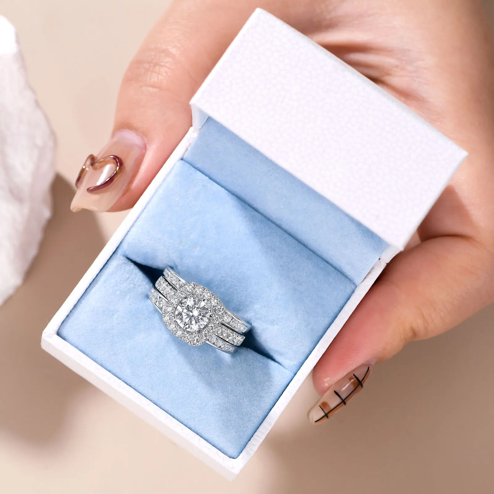 Conjunto de anillos de boda de plata 925 para mujer con anillo de compromiso halo y circonia cúbica de 1 quilate