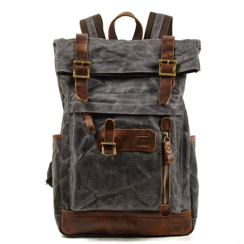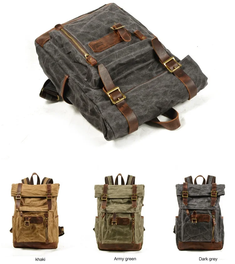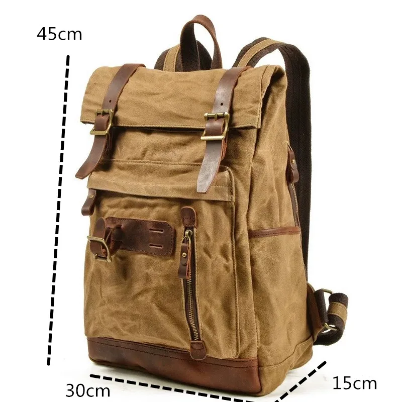 Esta mochila vintage de lona y cuero para hombre combina estilo clásico con funcionalidad moderna, ofreciendo gran capacidad y resistencia al agua para proteger tus pertenencias en viajes, escuela o uso diario. Su diseño robusto y duradero incluye múltiples compartimentos para organizar libros, ropa, dispositivos electrónicos y accesorios, mientras que las correas acolchadas brindan comodidad incluso en trayectos largos. Perfecta para quienes buscan una mochila elegante, práctica y confiable, que combine estética retro con materiales de alta calidad y versatilidad en cualquier ocasión.