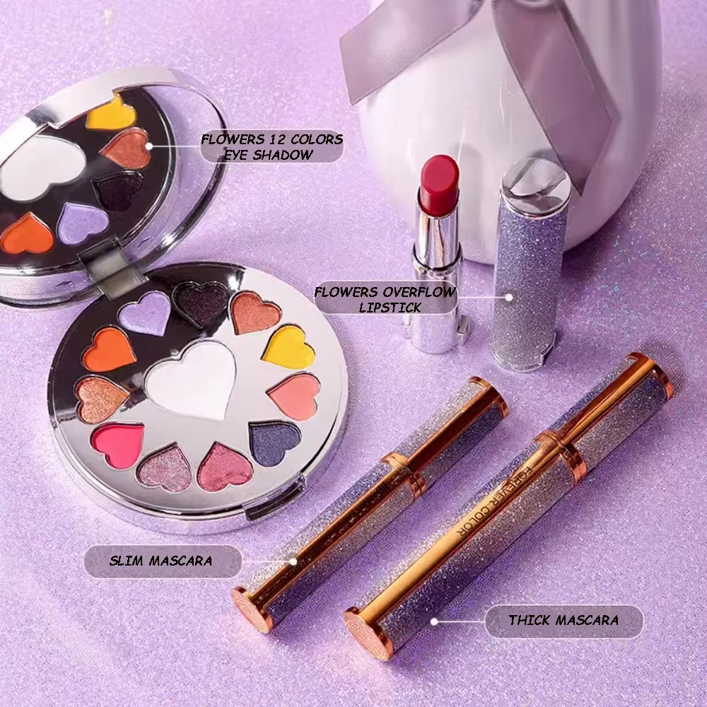 Set de maquillaje inspirado en la elegancia oriental Beauty Lotus Pond Moonlight, presentado en una lujosa caja de regalo temática. Incluye un labial velvet de acabado suave, corrector de alta cobertura, sombra de ojos con tonos delicados y un polvo fijador que perfecciona el maquillaje por horas. Una colección ideal para regalar o para quienes aman los productos de belleza con diseño artístico y calidad profesional.