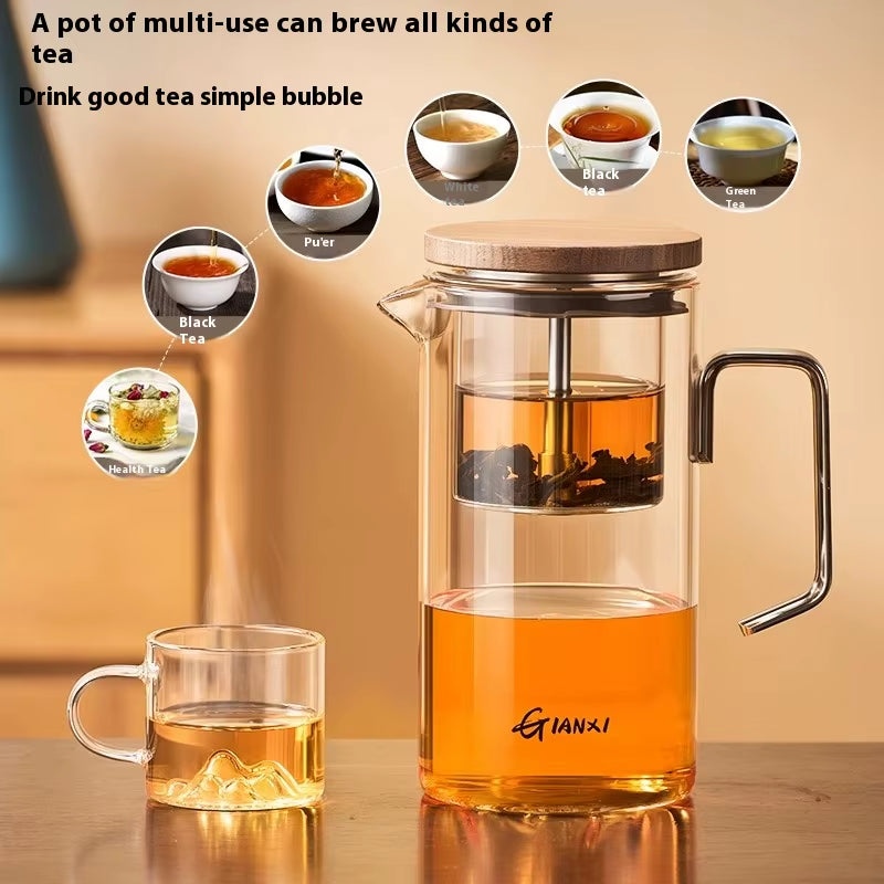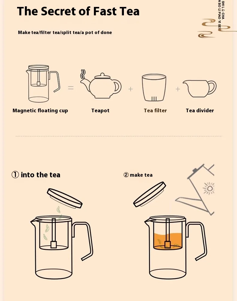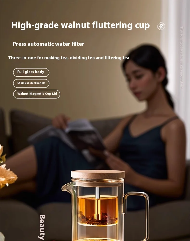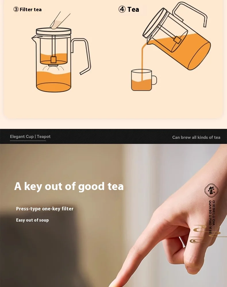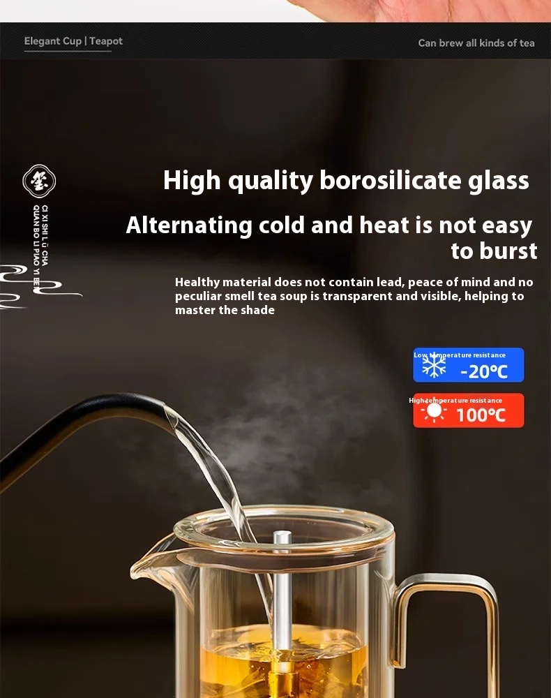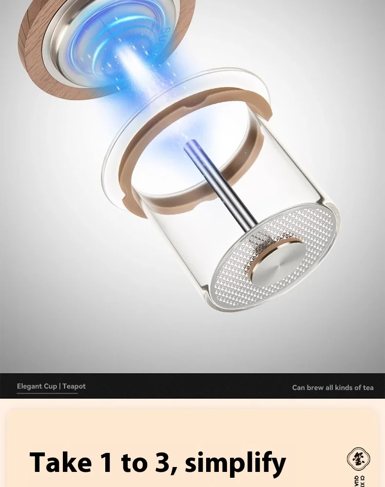 Esta elegante taza de té de vidrio con ventosa magnética forma parte de un juego de té de alta gama, ideal para disfrutar de ceremonias del té en casa; su diseño con separador permite infusionar de manera perfecta, mientras que la estética sofisticada y funcional la convierte en una pieza práctica y decorativa, perfecta para amantes del té que buscan estilo y comodidad. --- Características: Diseño elegante La tetera Gianxi con sistema de succión magnética destaca por su elegante diseño, convirtiéndola en un complemento sofisticado para cualquier ceremonia del té. Uso versátil Ideal tanto para el hogar como para ceremonias del té, este juego de té es versátil y adecuado para diversas ocasiones. Confianza de la marca Como parte de la prestigiosa marca GIANXI, puede confiar en la calidad y la artesanía de esta taza de té de alta gama. Material de alta calidad Elaborado con vidrio de alta calidad, este juego de té ofrece claridad y durabilidad, perfecto para disfrutar de cada sorbo.