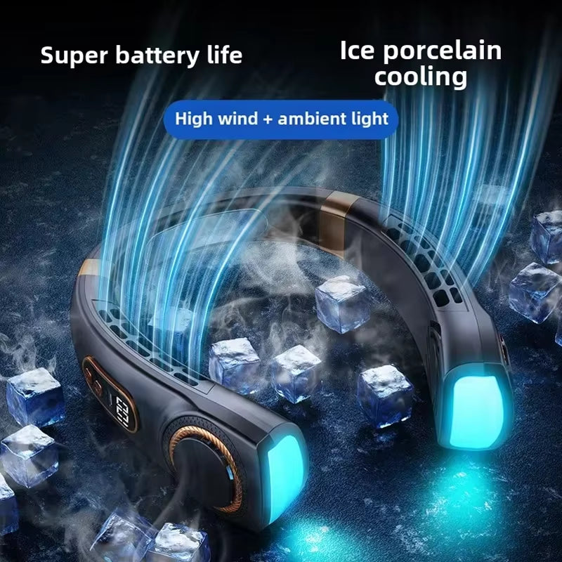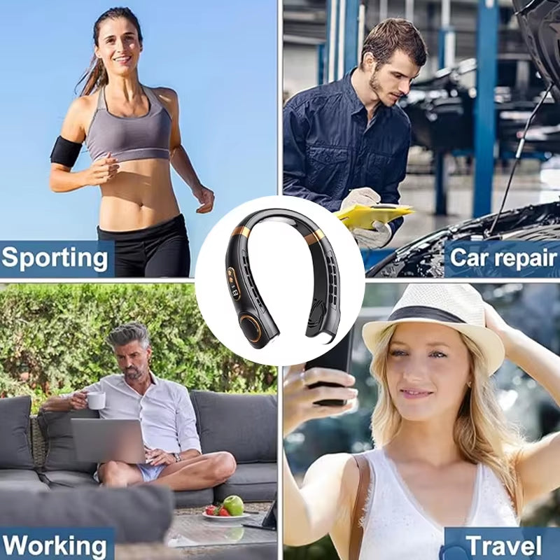 Ventilador de Cuello Sin Aspas | Silencioso, Portátil y Manos Libres con Viento Fuerte para Exteriores de Verano